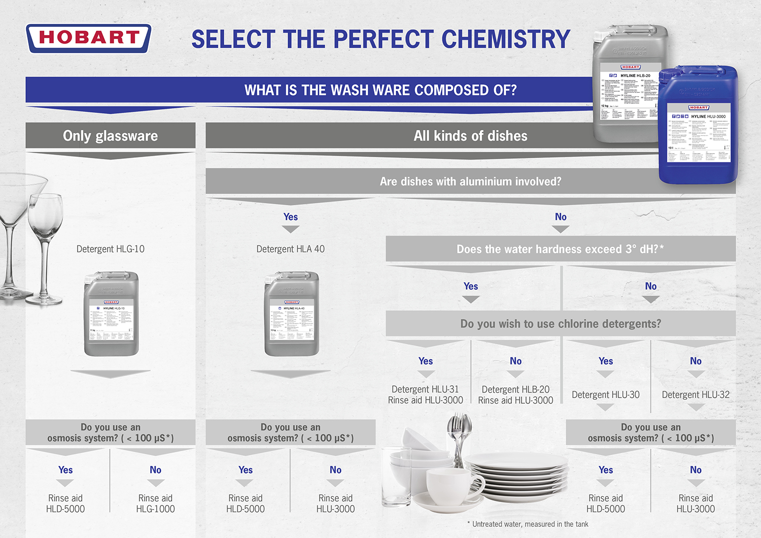 - For universal use, depending on the degree of dirt deposits and on water hardness, we recommend HLU-30, -31 or -32 detergents as well as HLU-3000 rinse aid from our universal series.
