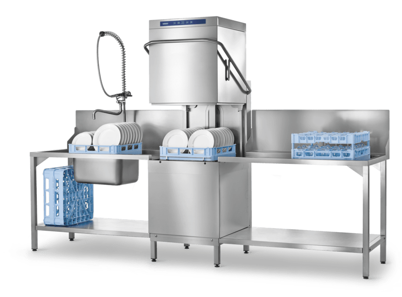 The AUPL hood-type model convinces with its extra-wide wash chamber for cleaning large-sized wash ware. The PERMANENT-CLEAN automatic soil removal ensures that all coarse soil is pumped out of the machine into an external strainer, which eliminates manual pre-washing.