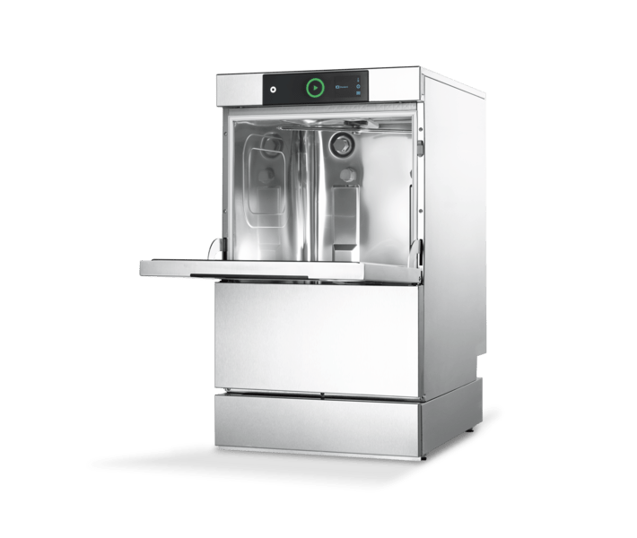 A smaller model for professional use in bars, restaurants, and hotels, with an integrated REVERSE OSMOSIS system fits perfectly. With a water consumption of just 1.7 litres this is the most economical glasswasher on the market. Rack size 400 x 400 mm, compact installation height of 820 mm.