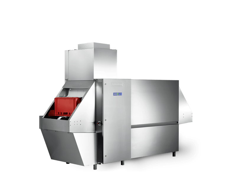 With the container and utensil wash system up to 2,000 boxes or racks can be washed per hour. The intelligent SENSO-SPACE compartment detection automatically detects gaps in the wash ware load and reduces the fresh-water supply down to the minimum.